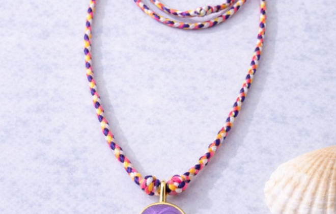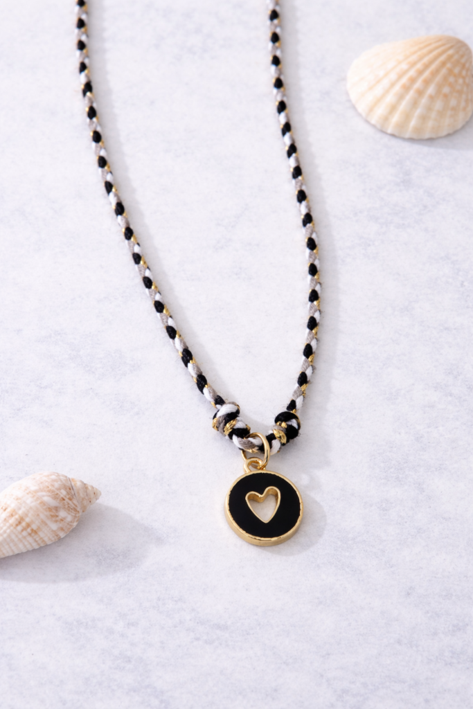 Colgante corazón calado con cordón de colores variados