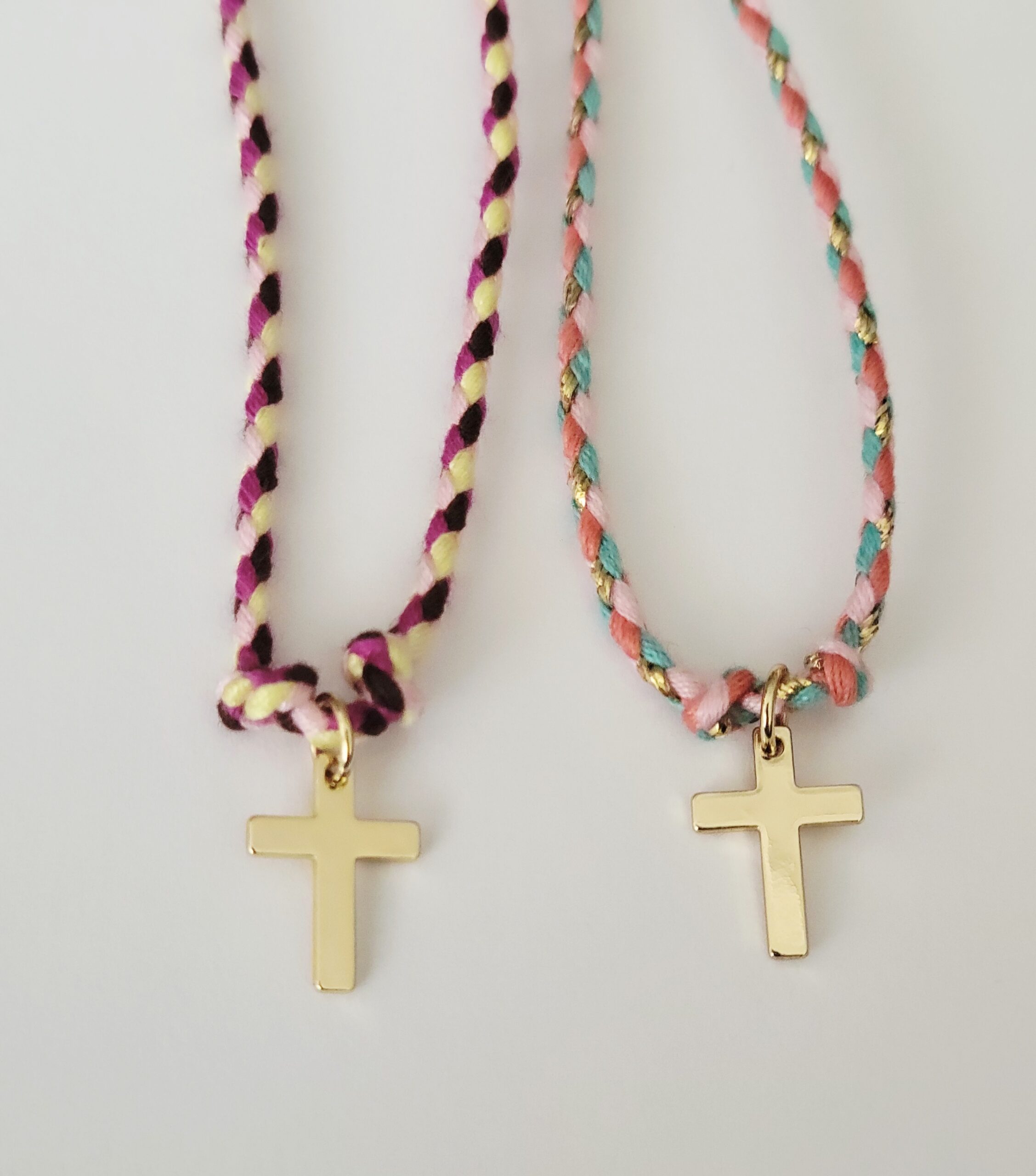 Colgante redondo cruz,dorada con cordón de colores variados Talla Única, cierre con nudo corredizo válido para distintos tamaños